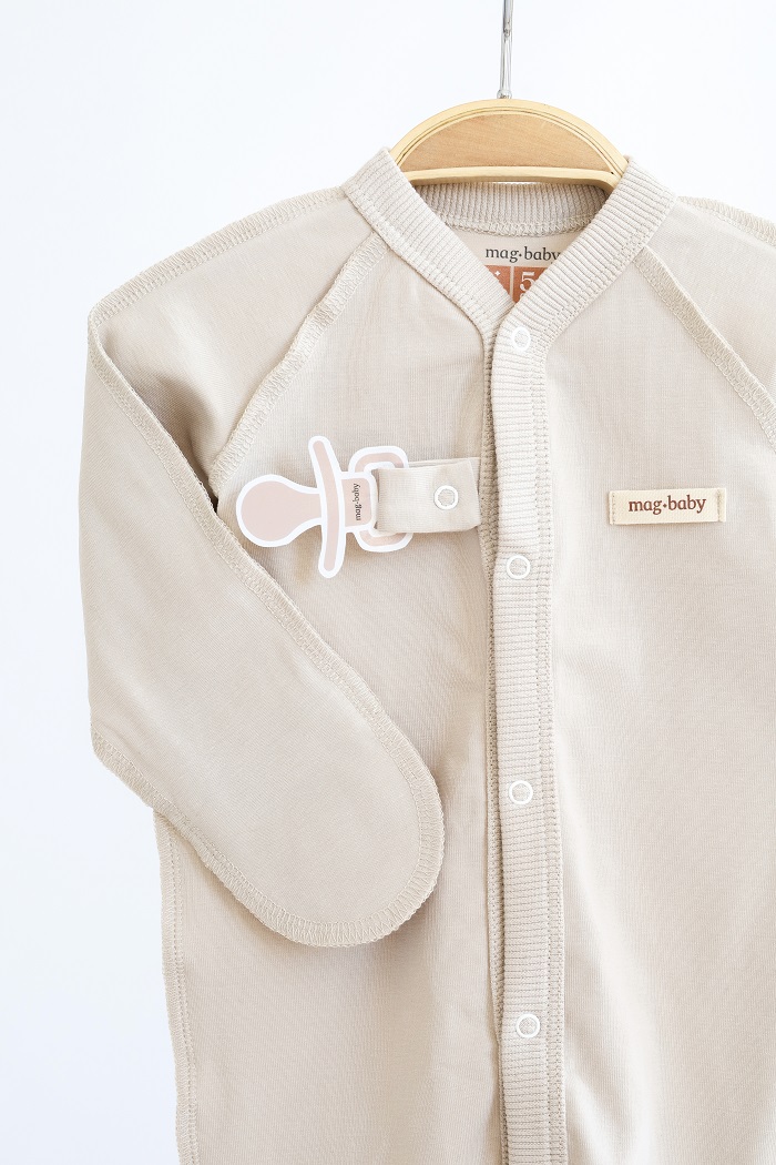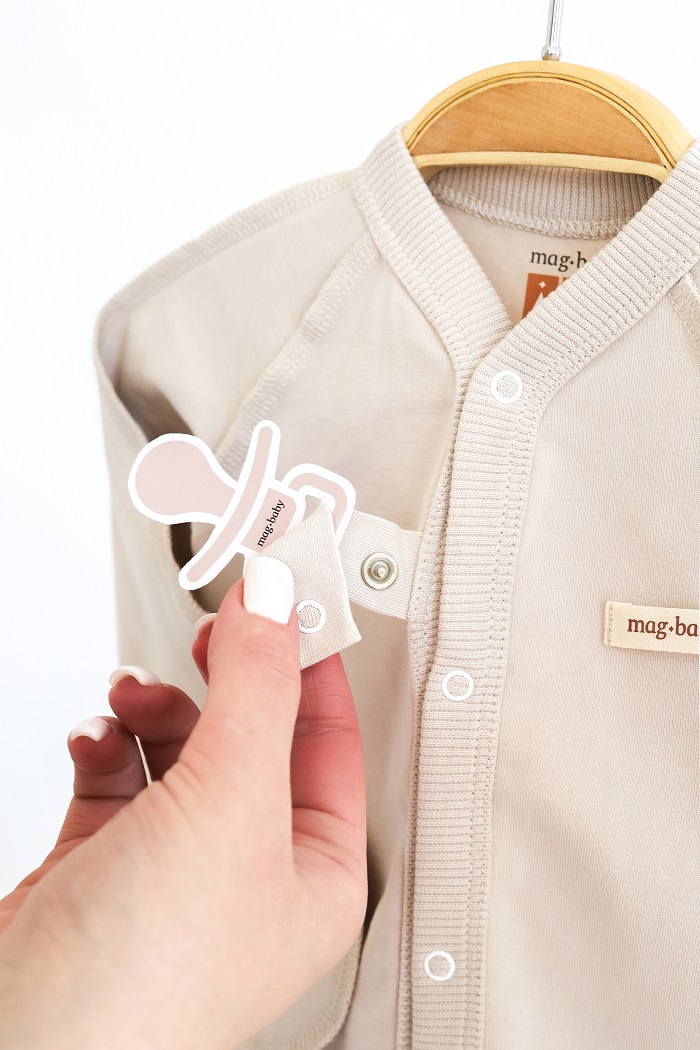 Є відворотні царапки та тримач для пустушки або іграшки, який зручно використовувати замість пластикових прищіпок.