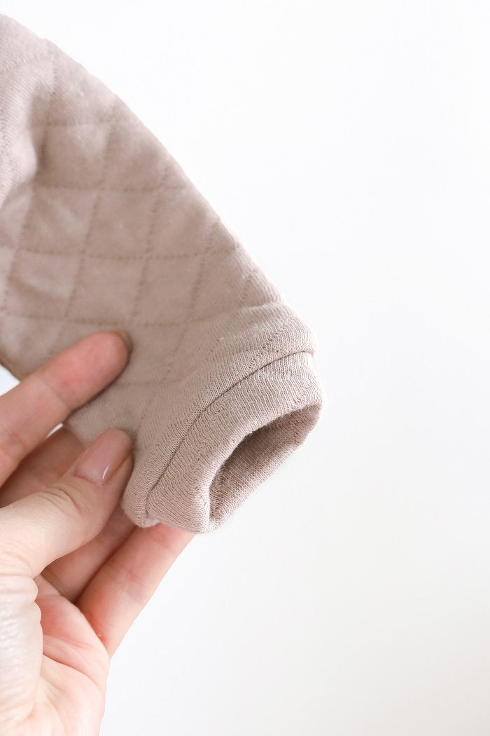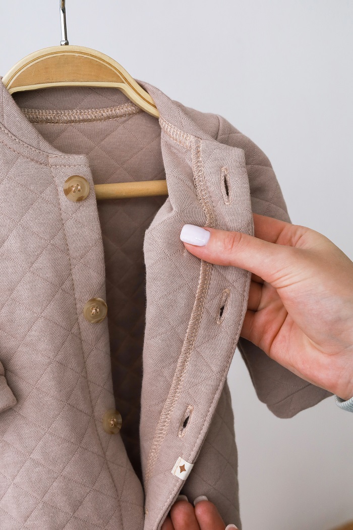 Звичайно ви зрозуміли до чого я веду. До того, що цей ось чоловічок в собі усе це і поєднує. Чоловічок має застібку в дві ніжки, означає зручно. Виконаний з утепленої тканини  - два шари трикотажу простьобаного тоненьким шаром синтепона, означає теплий. І оскільки трикотаж бавовняний з лиця та вивороту, означає натуральний. Красивим його робить текстура тканини, нашивка і гудзики.