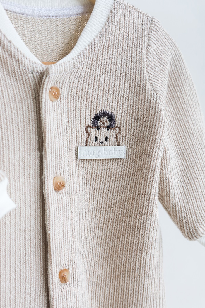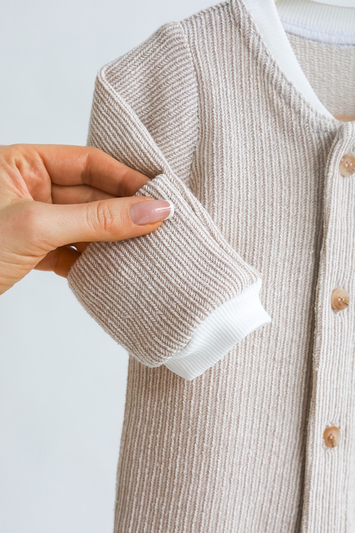 Чоловічок можна вдягати на голе тіло. Пошитий зі 100% бавовни — трикотажу двонитки з великою петлею всередині.