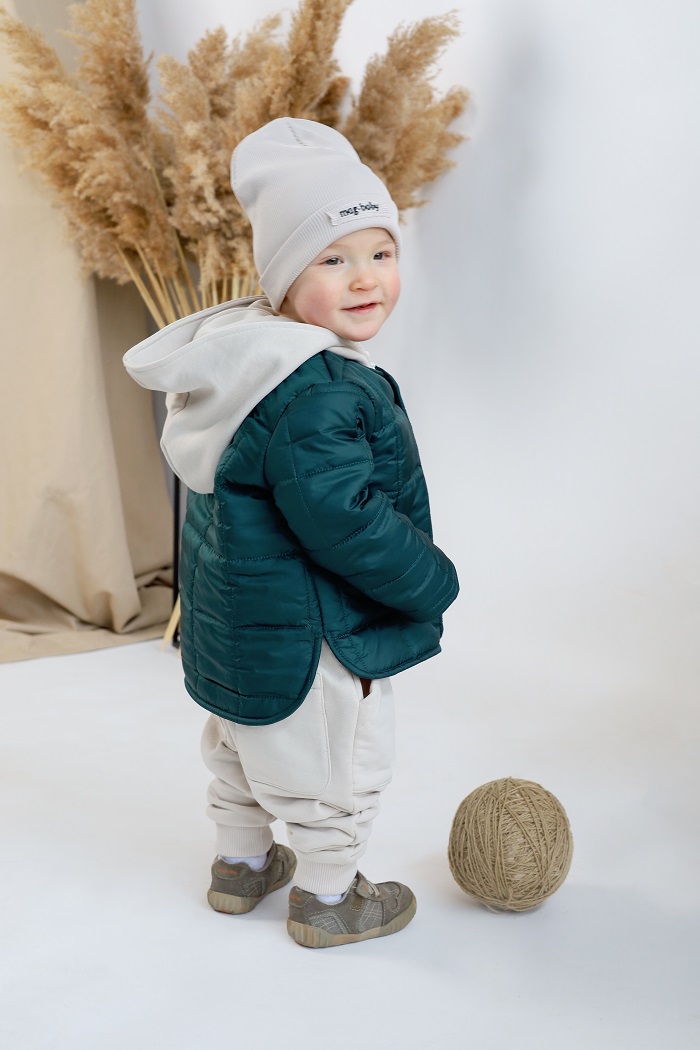 Зверху простьобана плащовка, всередині підкладочна тканина, застібається на кнопки, утеплена силіконізованим синтепоном, який зберігає тепло та захищає від вітру.