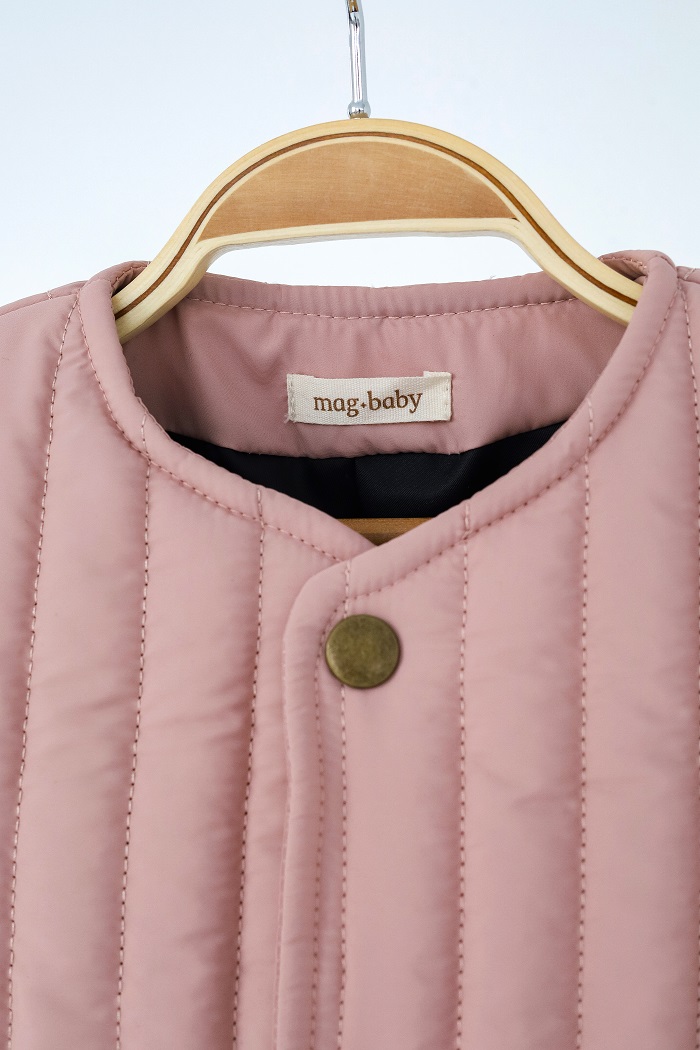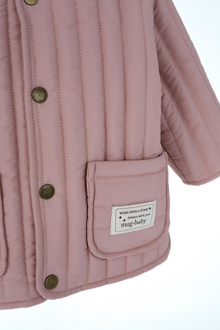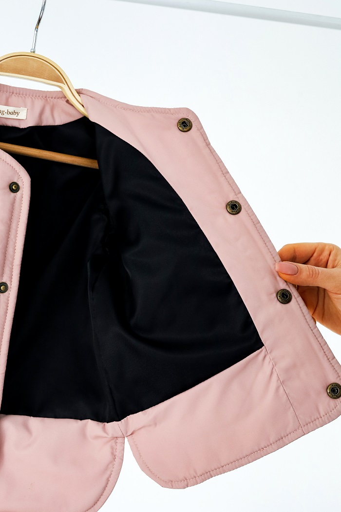 Зверху простьобана плащовка, всередині підкладочна тканина, застібається на кнопки, утеплена силіконізованим синтепоном, який зберігає тепло та захищає від вітру.