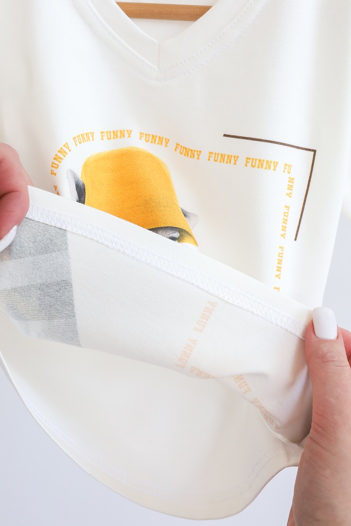 Принт зроблений цифровою накаткою, не витирається та не тьмяніє після численного прання.