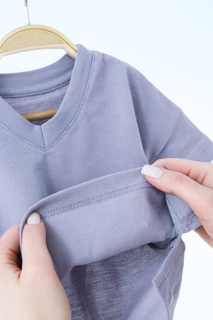Футболка має гарну, охайну обробку горловини та збоку оздоблена нашивкою.