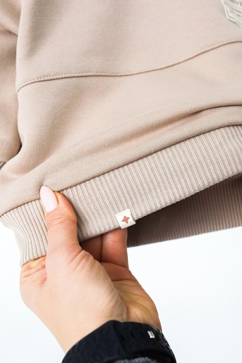 У плечовий шов вшита силіконова гумка, яка не дає розтягуватись гольфу саме в цьому місці і дозволяє носити його не один рік. Довгий рукав, м'яка еластична тканина зі 100% бавовни. Під улюблені джинси, лосини, штанці або сарафан.
