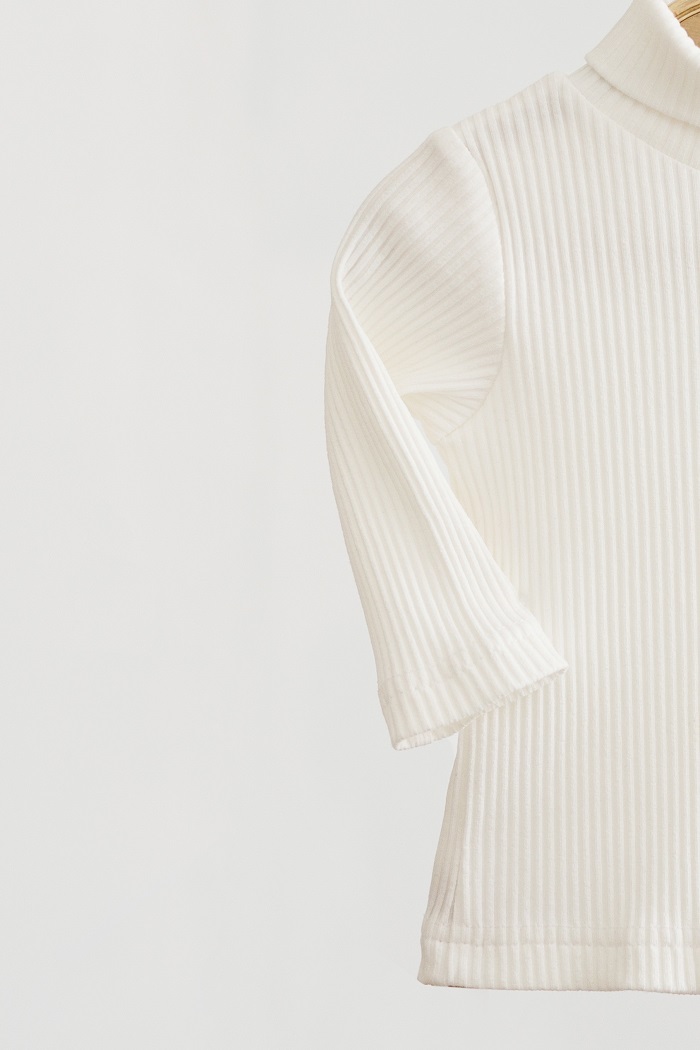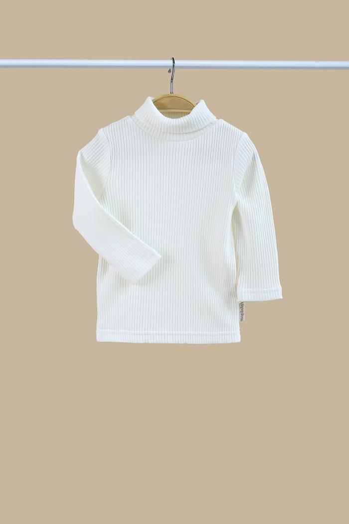У плечовий шов вшита силіконова гумка, яка не дає розтягуватись гольфу саме в цьому місці і дозволяє носити його не один рік. Довгий рукав, м'яка еластична тканина зі 100% бавовни. Під улюблені джинси, лосини, штанці або сарафан.