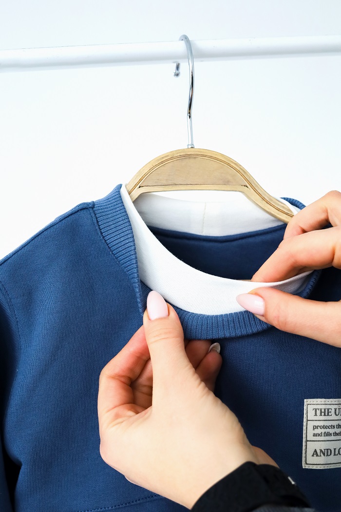 Базовий світшот, але щось в ньому є, правда? Увагу одразу привертає контрастний подвійний комір з білою смужкою. Ефект стильної багатошаровості, який і ви, і ми однаково любимо.