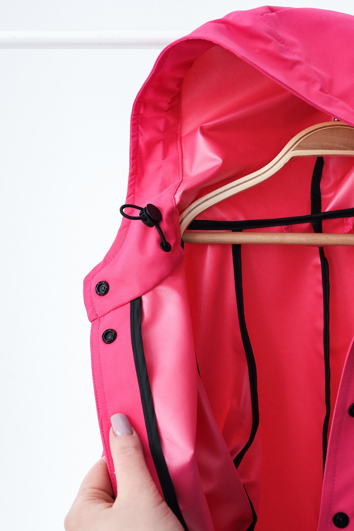 • Вшитий чохол-сумочка, завдяки чому зручно носити дощовик з собою або скласти його вологим після використання.