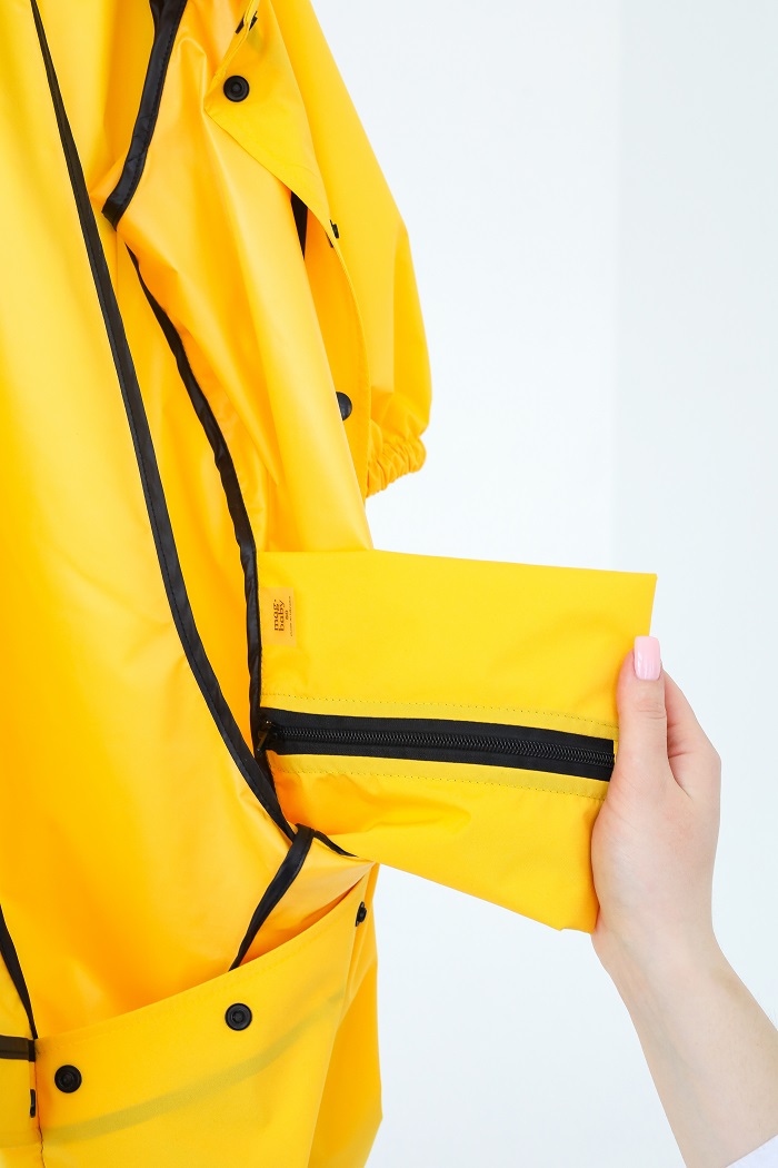 А ще, завжди під рукою. Ми спеціально розробили вшитий чохол-сумочку, завдяки чому зручно носити дощовик з собою або скласти його вологим після використання.