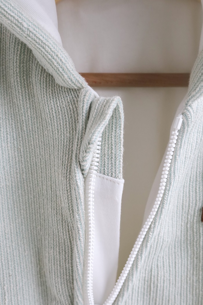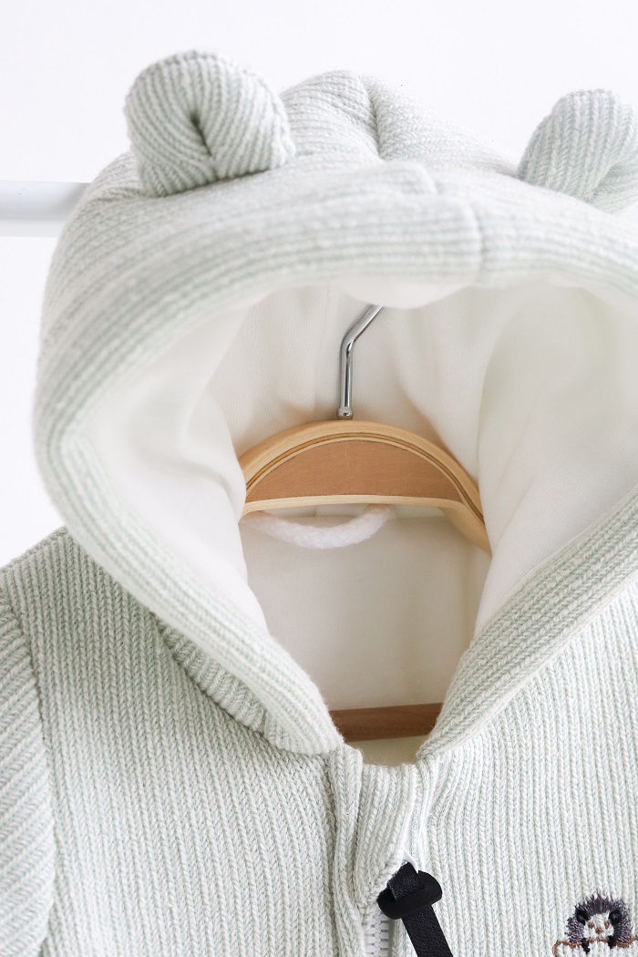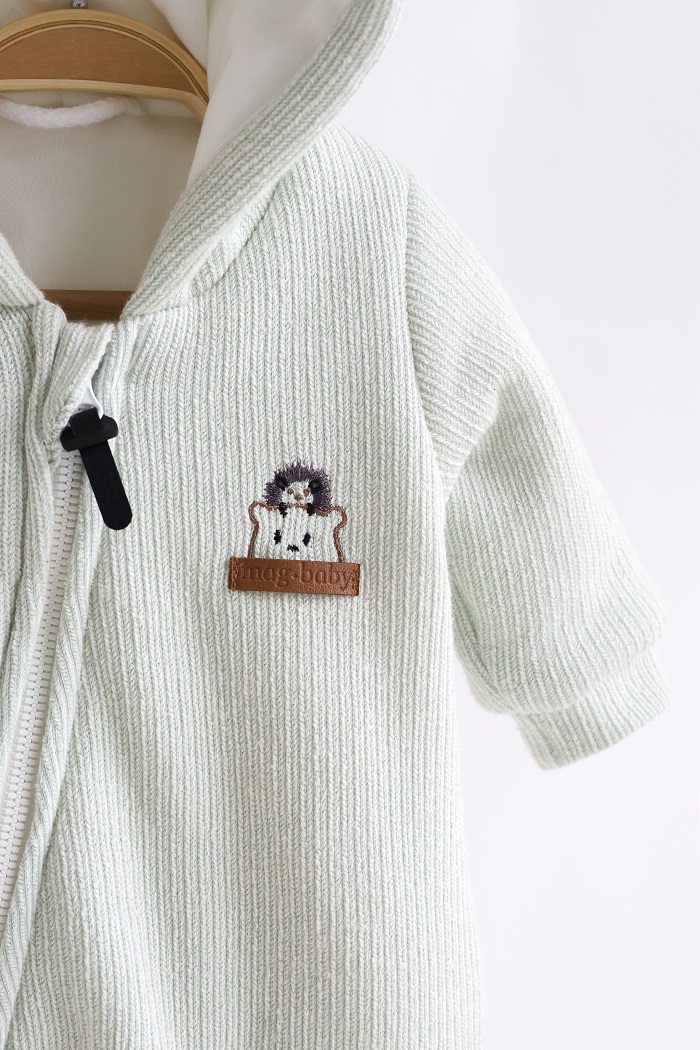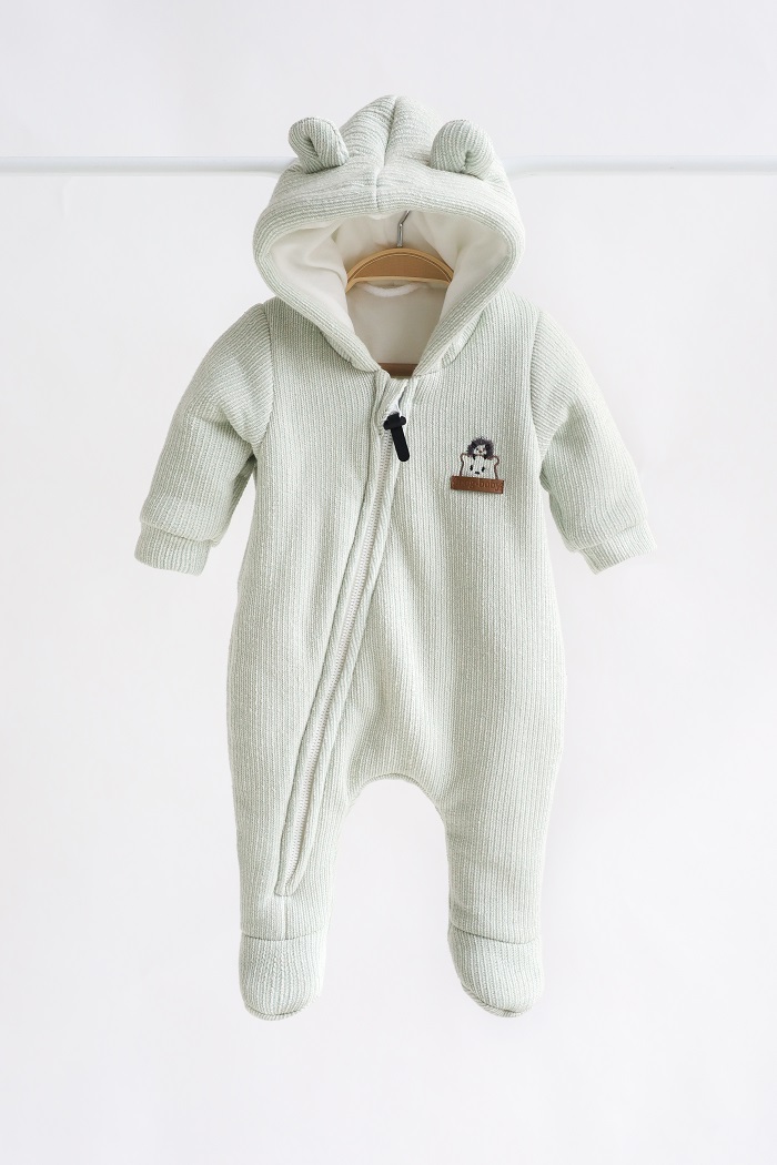 Пошитий зі 100% бавовни. Зовні трикотаж двунитка з великою петлею, а всередині м'який інтерлок. Утеплювач – G-loft 100 щільності, а не 200, як зазвичай. Тому комбінезон «Zoo» розрахований на квітень-травень або вересень-жовтень.