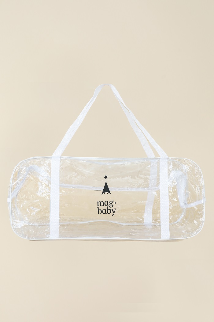 Сумки виготовлені з якісного ПВХ. Завдяки прозорим стінкам ви одразу бачите, що всередині, а зручні ручки та блискавка роблять їх надійними супутниками у пологовий.