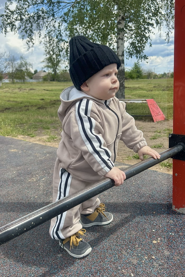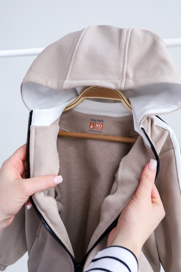 Пошитий з футера петлі без начосу. Така тканина щільна, тому зігріє малечу у міжсезоння, але не буде парити. Чудовий варіант, коли погода ще мінлива, і може похолодати чи потеплішати декілька разів на годину Зручно носити під жилетку чи демісезонну курточку.