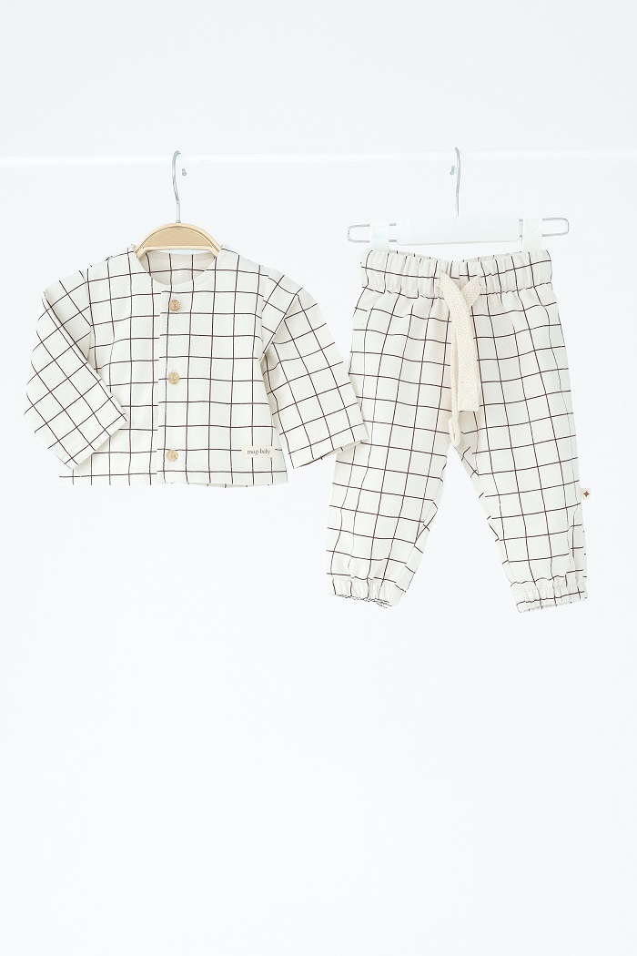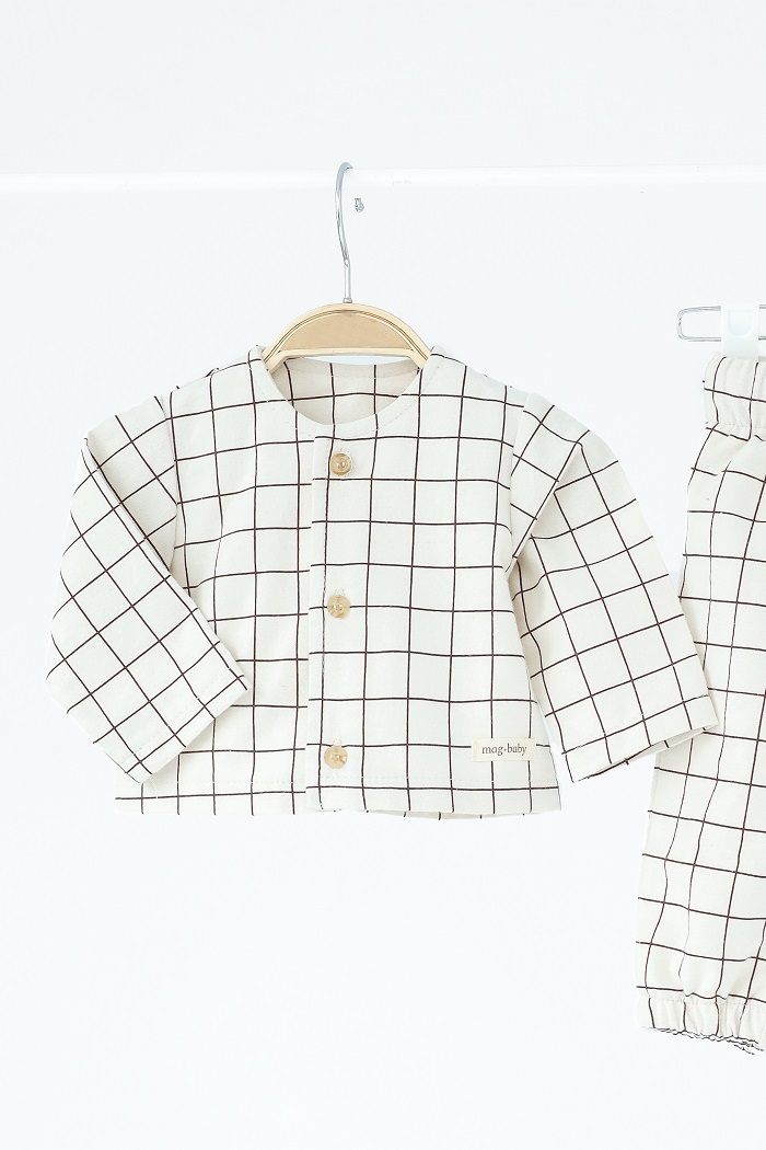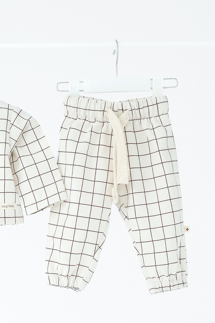 Пошитий зі 100% натуральної бавовни з начосом, м’який та ніжний на дотик. Не спричиняє алергії та подразнень, зберігає тепло та не парить водночас. Кофту й штанці можна носити разом або окремо — міксуйте як зручно.