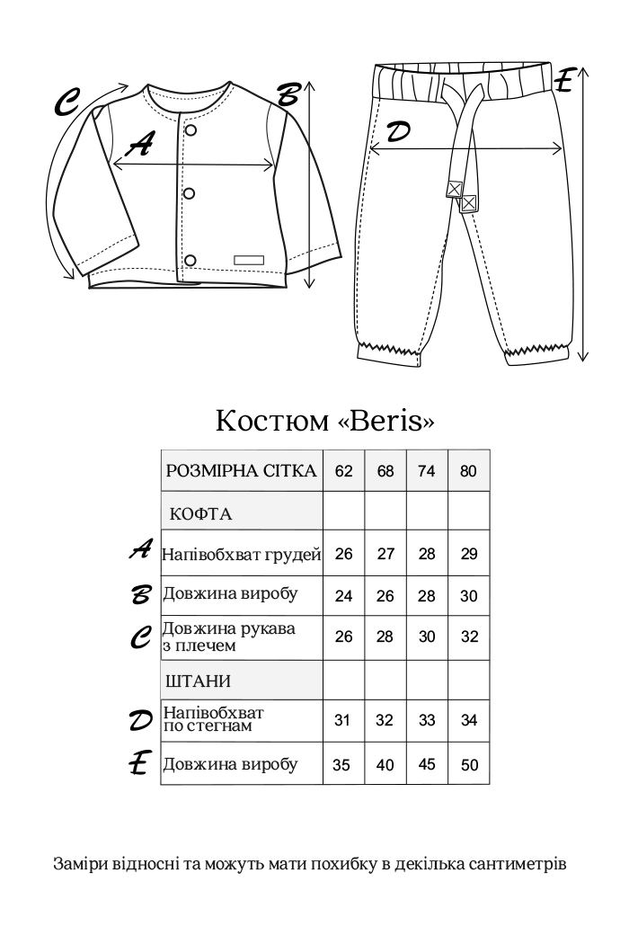 Цей костюм став вашим фаворитом в утепленому наборі для новонародженого «Beris». Тому ми пошили його у більших розмірах, адже з такими речами зовсім не хочеться розлучатися. Створено, щоб комфорт з перших днів залишався з малюком і надалі.