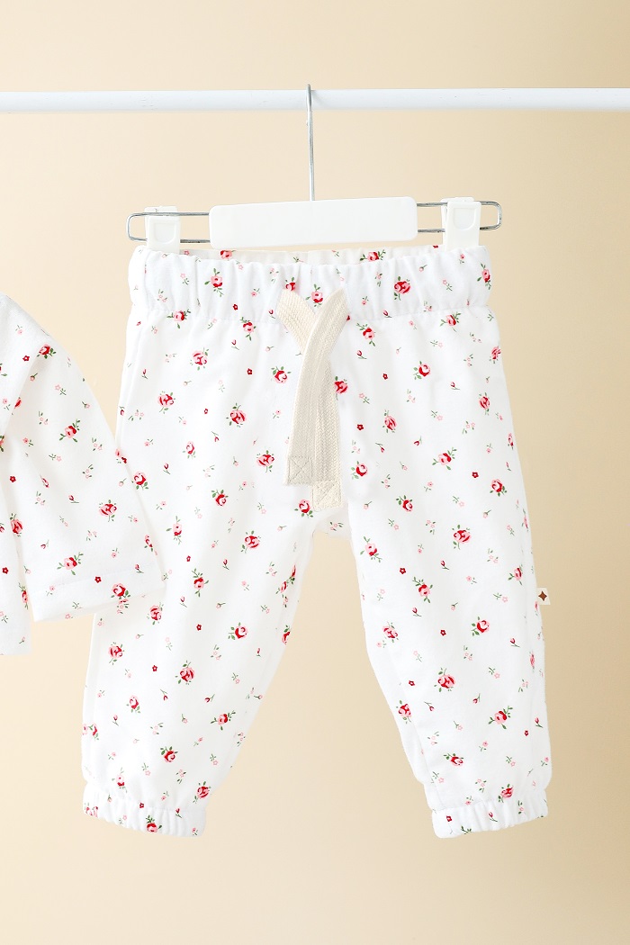 Пошитий зі 100% натуральної бавовни з начосом, м’який та ніжний на дотик. Не спричиняє алергії та подразнень, зберігає тепло та не парить водночас. Кофту й штанці можна носити разом або окремо — міксуйте як зручно.