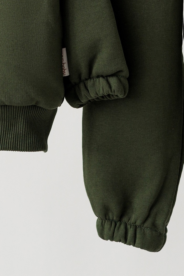 Пошит костюм з дуже якісного футеру - тринитка петля. Саме такі вироби можна вважати всесезонними: і на прохолодне літо і на демісезон. Дехто вважає, що ця тканина не дуже тепла і не підходить на демісезонну та зимову пору року, бо в неї немає начосу. Але це не так. Бо речі саме з такої тканини стануть вам у нагоді, коли вам потрібно буде роздягнути дитину в теплому приміщенні: дитячий садок, дитяча кімната в ТЦ, кафе, похід у гості. Через відсутність начосу, дитина не спітніє, а сама тканина збереже достаньо тепла.
