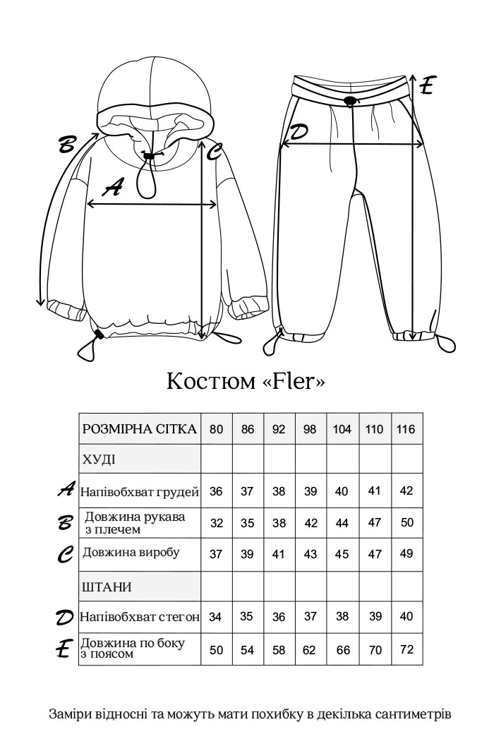 За рахунок об'ємної over size моделі, спочатку носимо як вільний з напуском, а потім, коли дитина підросте, продовжуємо носити як костюм звичайної посадки.