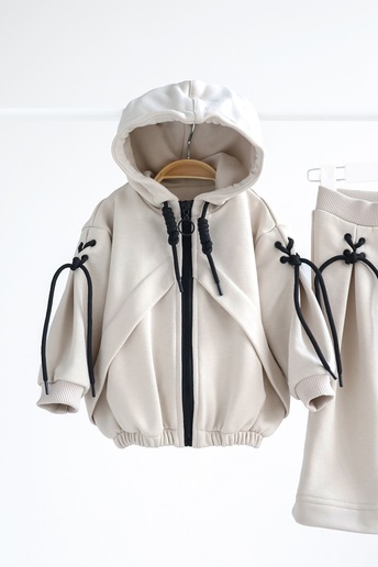 На кофтинці та штанцях є кишені. Утяжка по низу кофти дозволяє зробити її більш об'ємною, за бажанням.