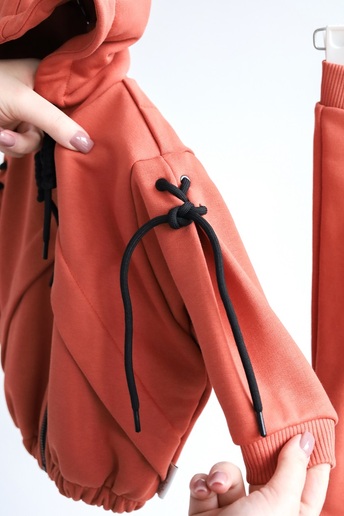 Універсальний: підходить і для прохолодних вечорів влітку, і для міжсезоння, і під зимовий комбінезон. Зручний крій не обмежує рухів, а стильні вставки в рубчик на рукавах та штанинах роблять його по-особливому гарним.
