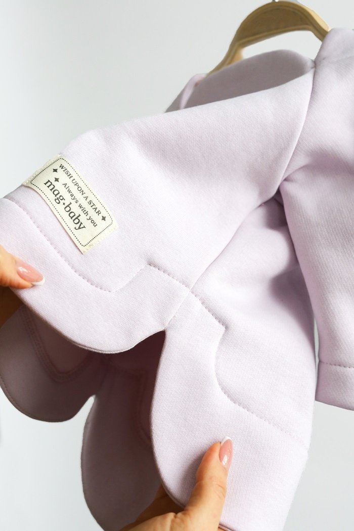 Кофта з футера — трикотажу тринитки з начосом. Не кошлатиться, не втрачає кольору та форми і дістанеться ще у спадок молодшим! Має подовжену спинку, що надійно захистить поперек малечі від вітру під час активних ігор та не задиратиметься, коли вона присідає. А м'який нестандартний виріз та манжети не натиратимуть ніжну шкіру.