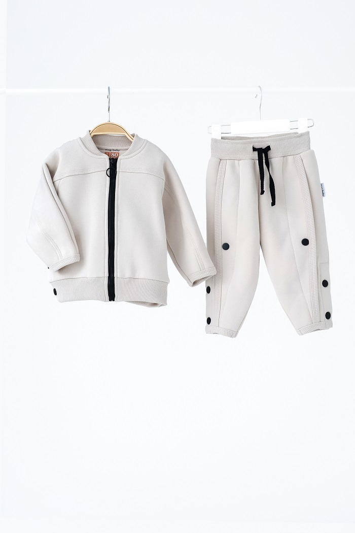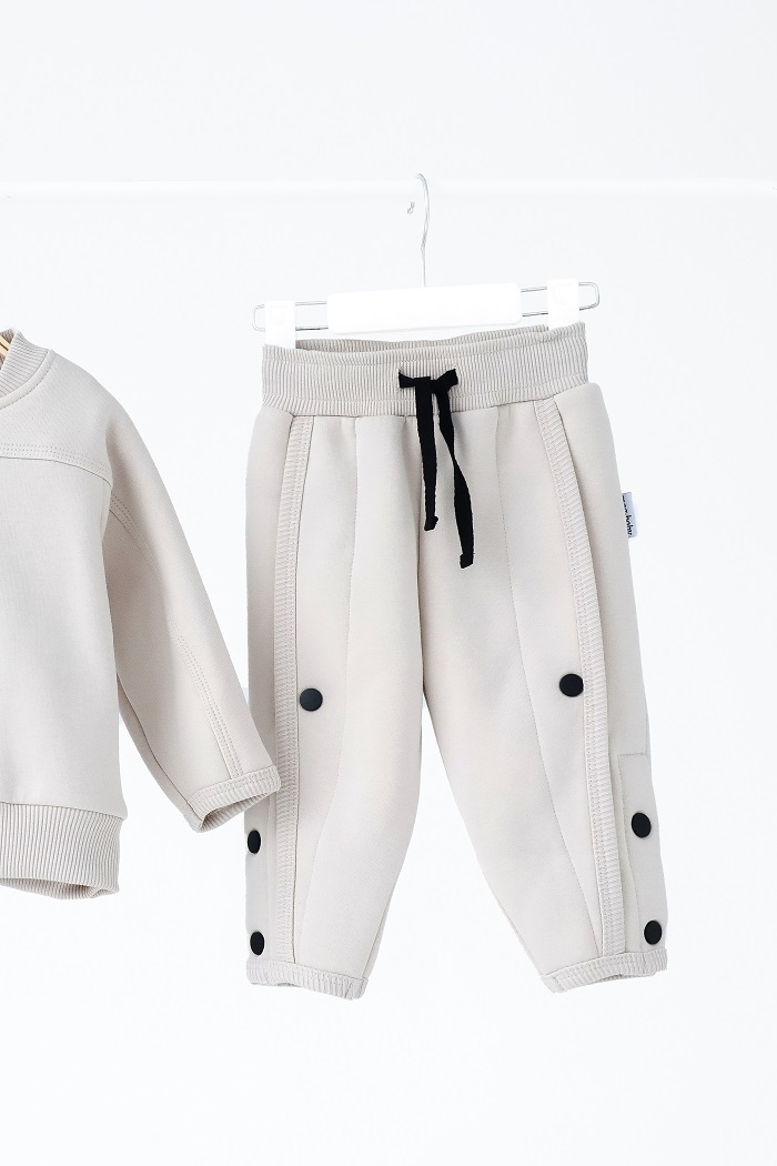 Цей костюм просто створений для затишних прогулянок у прохолодну пору. Декоративні шви та кнопки з боків — ось родзинка, що додає стилю. До речі, кнопки розстібаються.