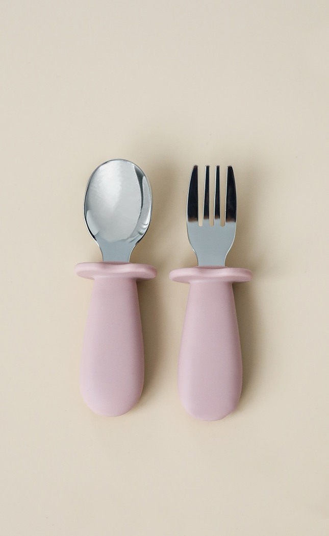 Ложка та виделка з м’якого харчового силікону з металевою робочою частиною — перші прибори для початку прикорму чи самостійних прийомів їжі. Зручні для маленької долоньки, не вислизають і допомагають спокійно донести їжу до ротика. Безпечний помічник у формуванні навички самостійного харчування, без зайвого безладу й нервів для матусі.