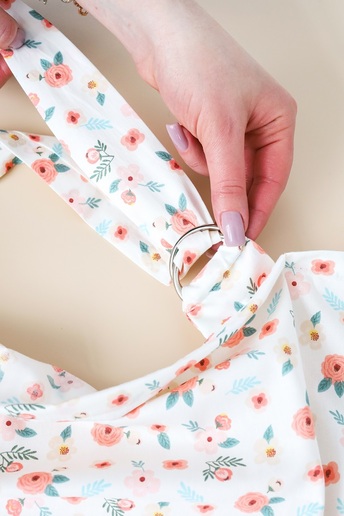 - Перекидна бретель, яка дає можливість регулювати висоту та підлаштовуватися під зручність мами та дитини. Кріпиться бретель за допомогою двох металевих бляшок.