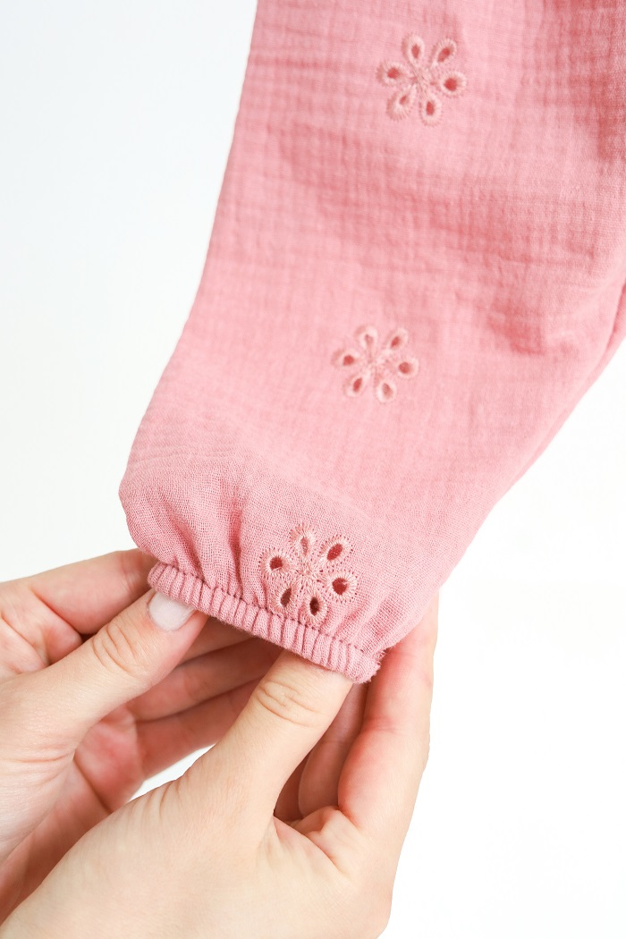 Муслін — 100% натуральна тонка бавовна. Легка, невагома тканина, що добре пропускає повітря, приємна до тіла й не спричиняє подразнень та алергії на чутливій шкірі малюка.
