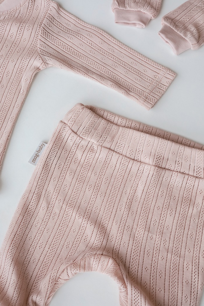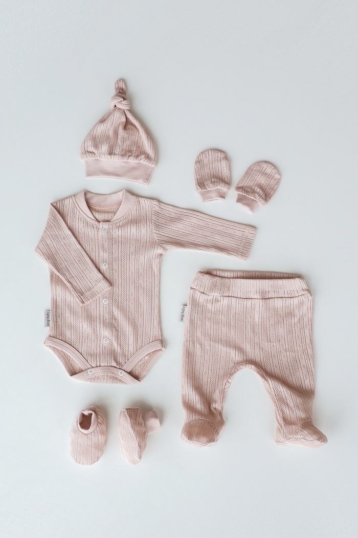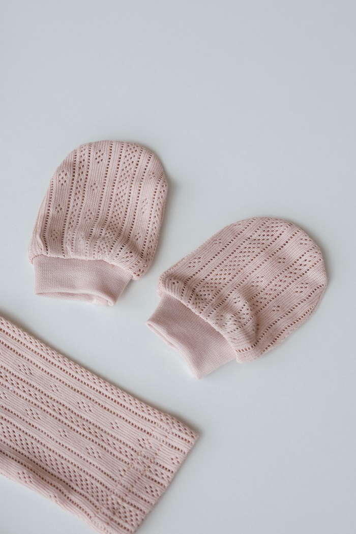 Кожен виріб виготовлений із повітряного трикотажу в перфорацію. Мамі точно можна не перейматися мімімішністю перших сімейних фото, цей набір для справжніх естетів.