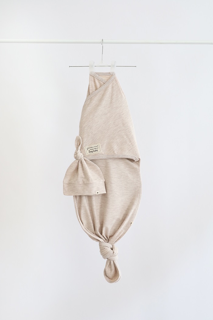 Безразмерная пеленка на липучках с шапочкой Каспер, Бежевая