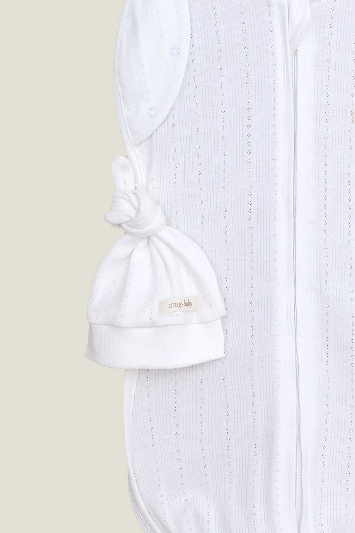 Благодаря тому, что пеленка не сшита снизу, пеленку кокон можно использовать как обычный спальник. Нет необходимости набирать кучу пеленок и спальников разных размеров, ведь пеленка на молнии "Каспер" растет вместе с вашим ребенком. Открытый низ, так же, дает возможность с легкостью сменить подгузник даже спящему малышу, не разбудив его при этом. Достаточно просто развязать узелок!