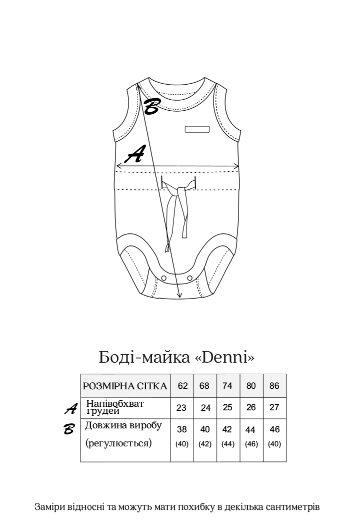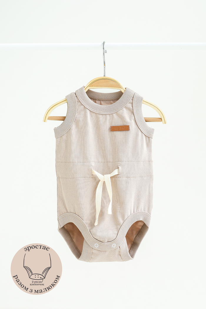 Эта майка-боди не простая, а волшебная, потому что растет вместе с малышом. Секрет в том, что она имеет два ряда кнопок. Благодаря этому можно регулировать длину боди в пределах 2 размеров.
