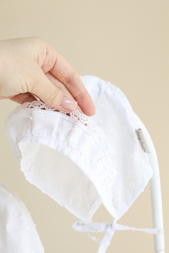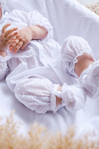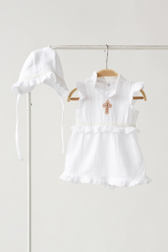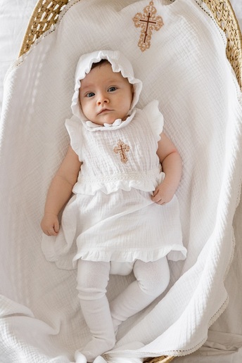 Комплект создан именно для крещения и выписки из роддома или на другие праздничные события. Весь комплект очень хорошо гармонирует с пледом этой же серии, который может быть крыжмой.