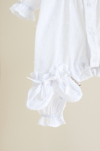 Ну как? Как можно пройти мимо этой изысканной красоты. Человечек изготовлен из самого нежного и мягкого трикотажа, который существует. И это – интерлок. Это конечно же100% хлопок и без сомнения для самых красивых девчонок. Спереди человечек имеет мягкий фатиновый декор в виде платья и отделку из натурального кружева. На спинке такого декора нет. Почему так? Ибо хорошо знаем, что малыши в этом возрасте не ходят и многое лежит на спинке.