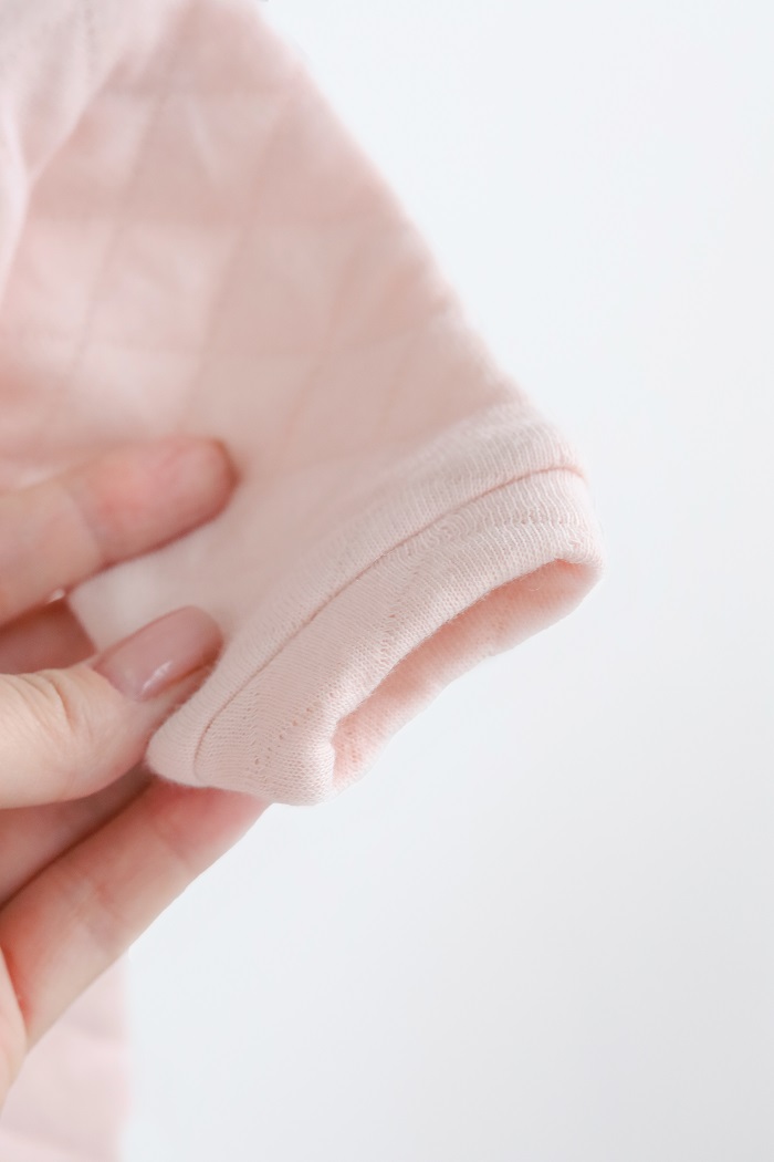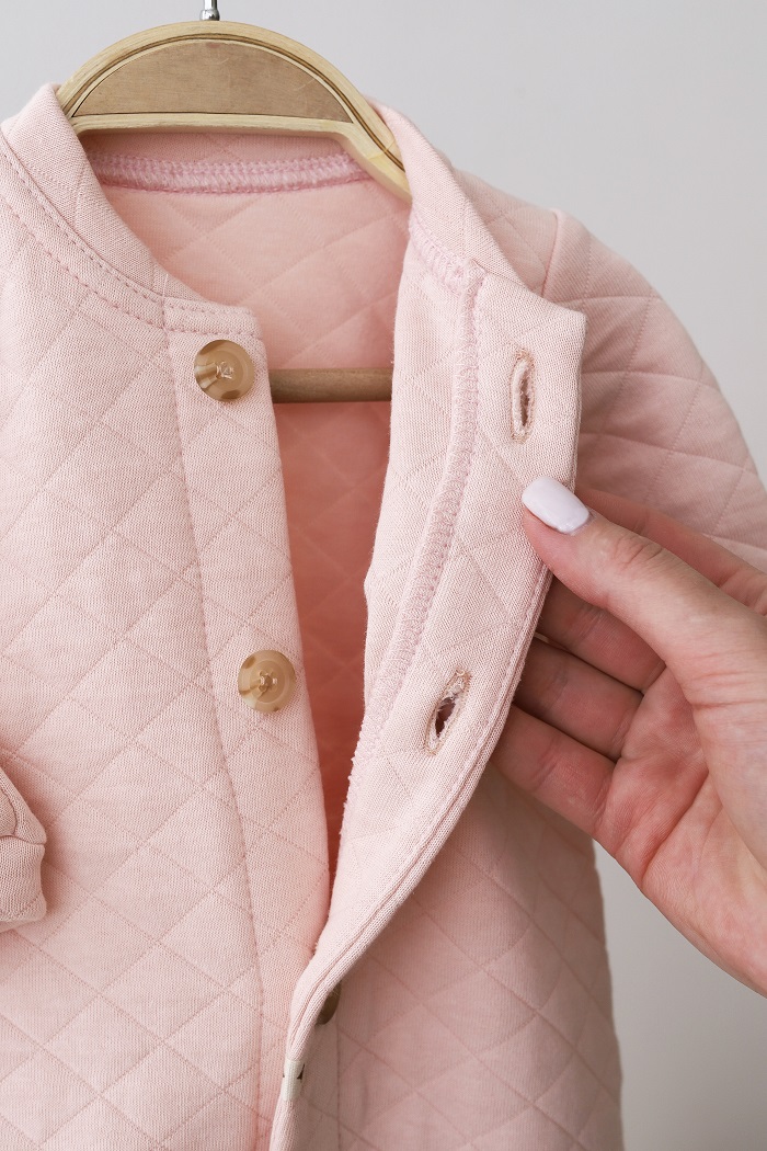 Конечно вы поняли к чему я веду. К тому, что этот вот человечек в себе всё это и сочетает. Человечек имеет застежку в две ножки, значит удобно. Выполнен из ткани «Капитоне» - два слоя трикотажа простеганного тоненьким слоем синтепона, значит теплый. И так как трикотаж хлопковый с лица и изнанки, значит натуральный. Красивым его делает текстура ткани, нашивка и пуговицы.