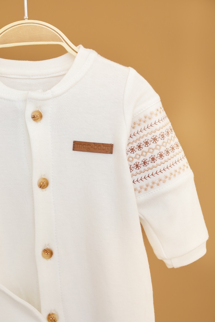 Чоловічок із натуральної тканини, дуже ніжний на дотик. Посадка зручна, легко вдягати та знімати. Вишивка на рукавах додає особливого шарму й робить образ стильним без зайвих деталей.