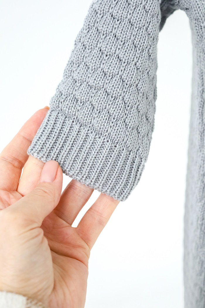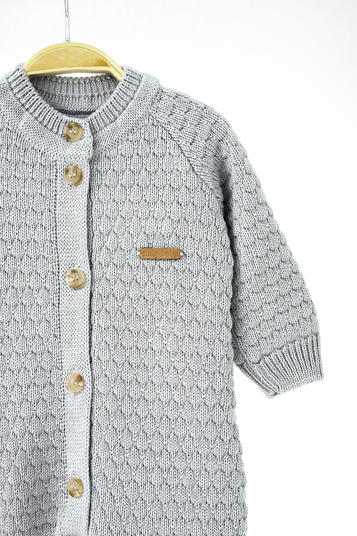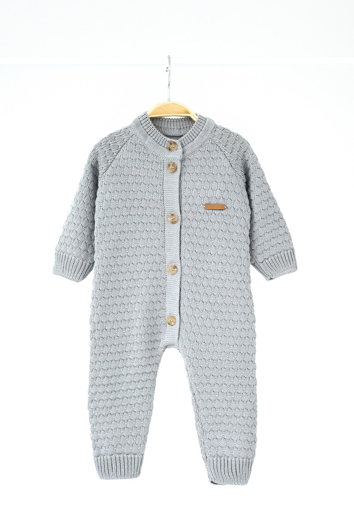 Мы специально сделали удлиненные манжеты, чтобы их можно было легко подвернуть в соответствии с ростом малыша и носить человечек дольше. Застегивается на пуговки и выглядит очень нежно.