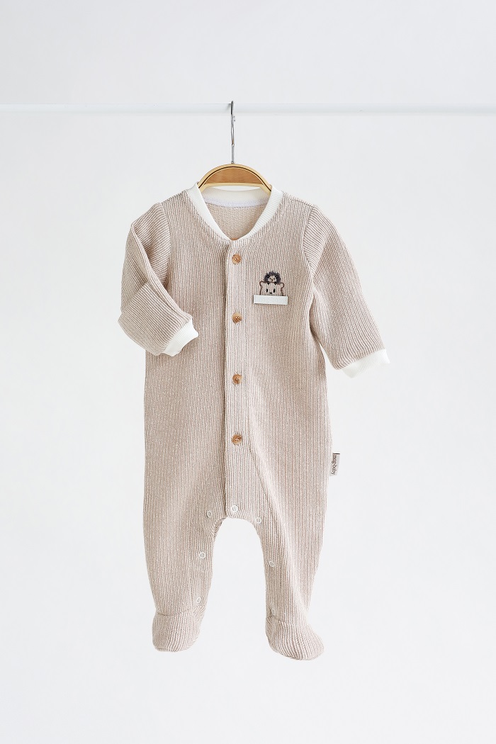 Спереди застегивается на пуговицы, а внизу на кнопки, чтобы легко было заменить подгузник.