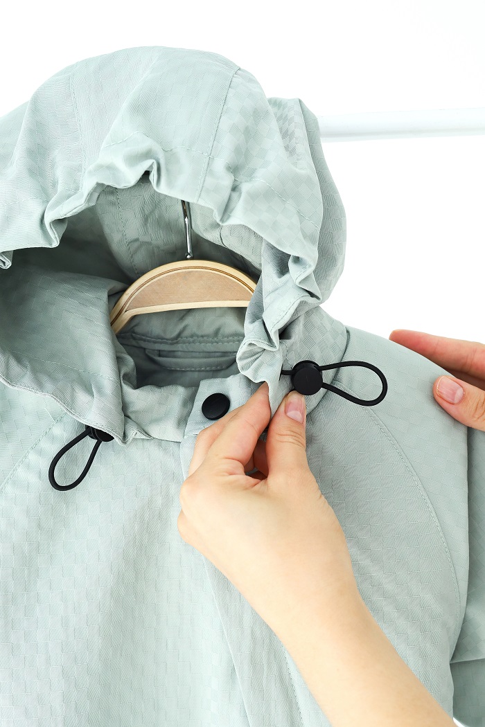 Капюшон с утяжкой позволяет регулировать объем, чтобы прохладный ветерок или капли дождя не пробрались за шиворот.