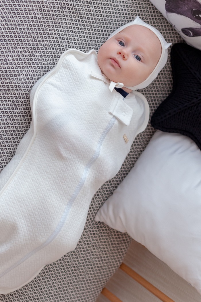 Кокон выполнен из материала под названием "Капитоне", который совместил в себе два слоя стеганого трикотажа (сверху и снизу) и тонким слоем синтепона между ними. Именно поэтому евро пеленки зефирной серии смогут как никто другой позаботиться о румяных щёчках в холодную пору )