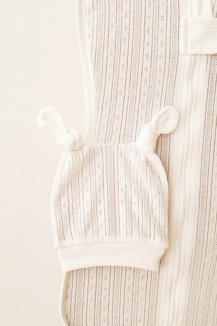 Этот кокон выполнен из очень интересной ткани с забавным названием "трансферли". Это такой трикотаж с орнаментом из дырочек. И все, без исключения, когда видят её говорят фразу: "Вауууу! ". И она действительно "вау". Но показать на фото очень тяжело, нужно просто увидеть вживую.