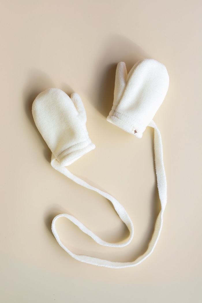 Для плотной посадки рукавичка имеет эластичный манжет. А чтобы не потерять правую или левую, мы сделали их на шнурочке, который легко прячется под одеждой.