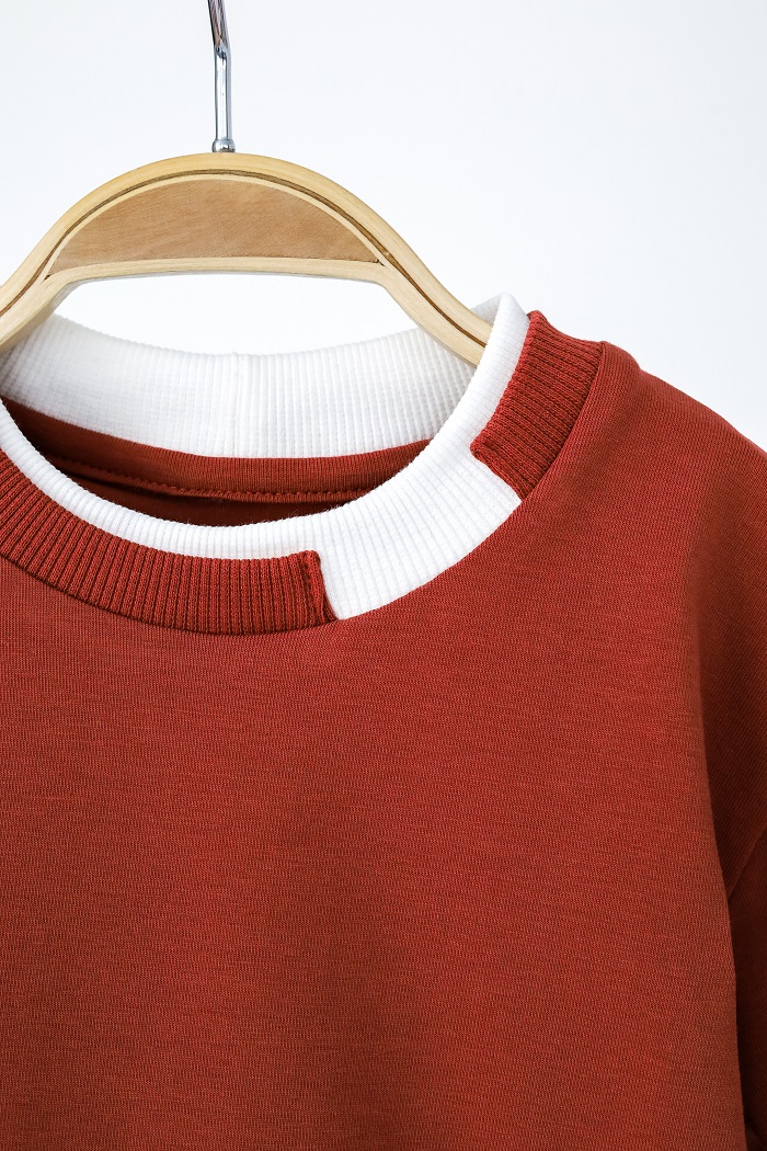 Сразу привлекает внимание контрастный двойной воротник с белой полоской. Выглядит, будто под низом еще есть белая футболка. Освежает образ и добавляет изюминки, ведь многослойность – это стильно!