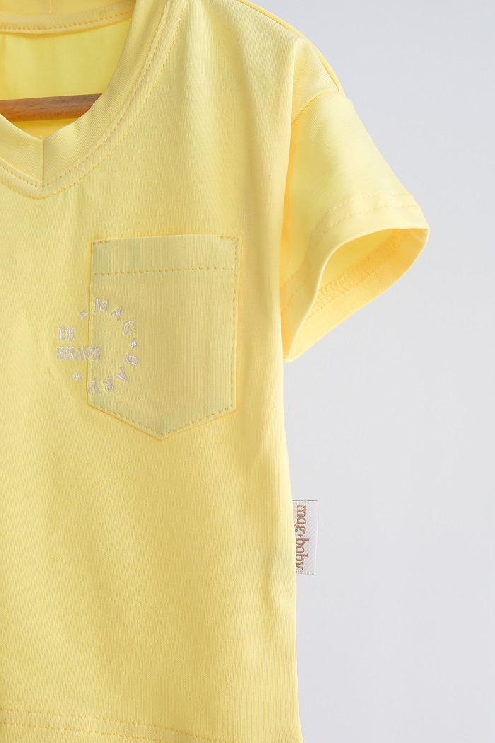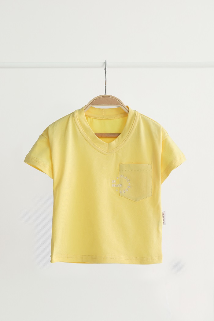 Украшенная футболка маленьким карманчиком, а для особого обаяния и привлекательности мы сделали V-образную горловину. А еще футболка имеет вышивку, очень символическую для украинцев и всего мира.