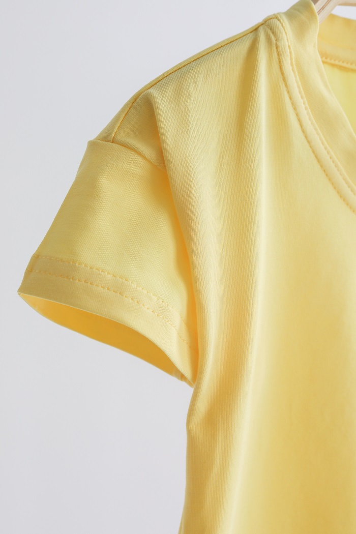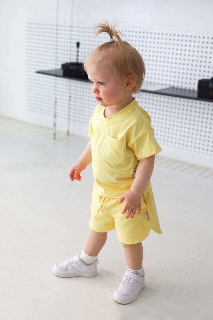 За счет своей универсальности, футболка будет очень классно сочетаться с комбинезоном, юбкой, джинсами и даже шортами, которые, кстати, можно приобрести в комплект к ней. А на прохладные летние вечера вы можете выбрать худи этой же серии.