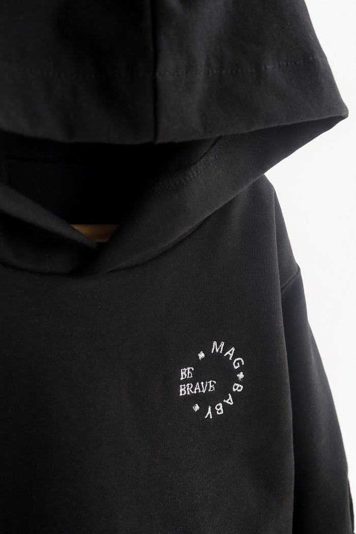 Впереди имеет вышивку, которая дополняет и завершает весь внешний вид худи.