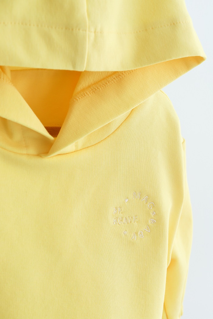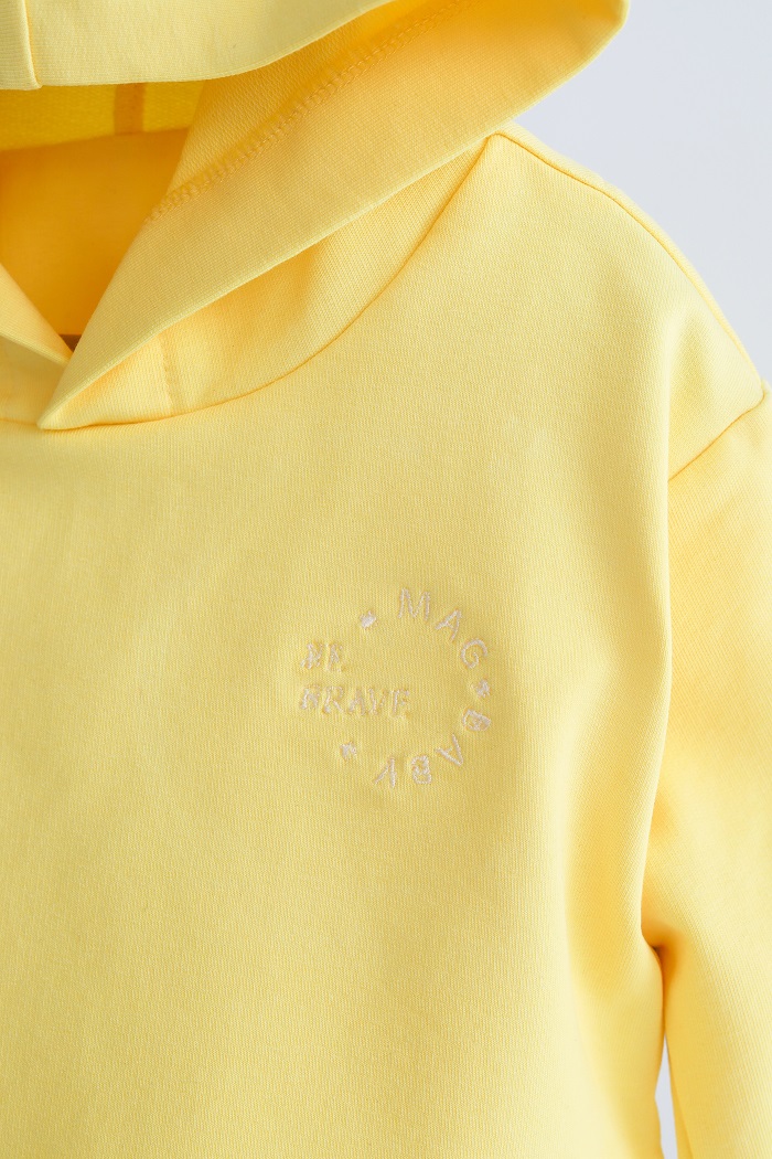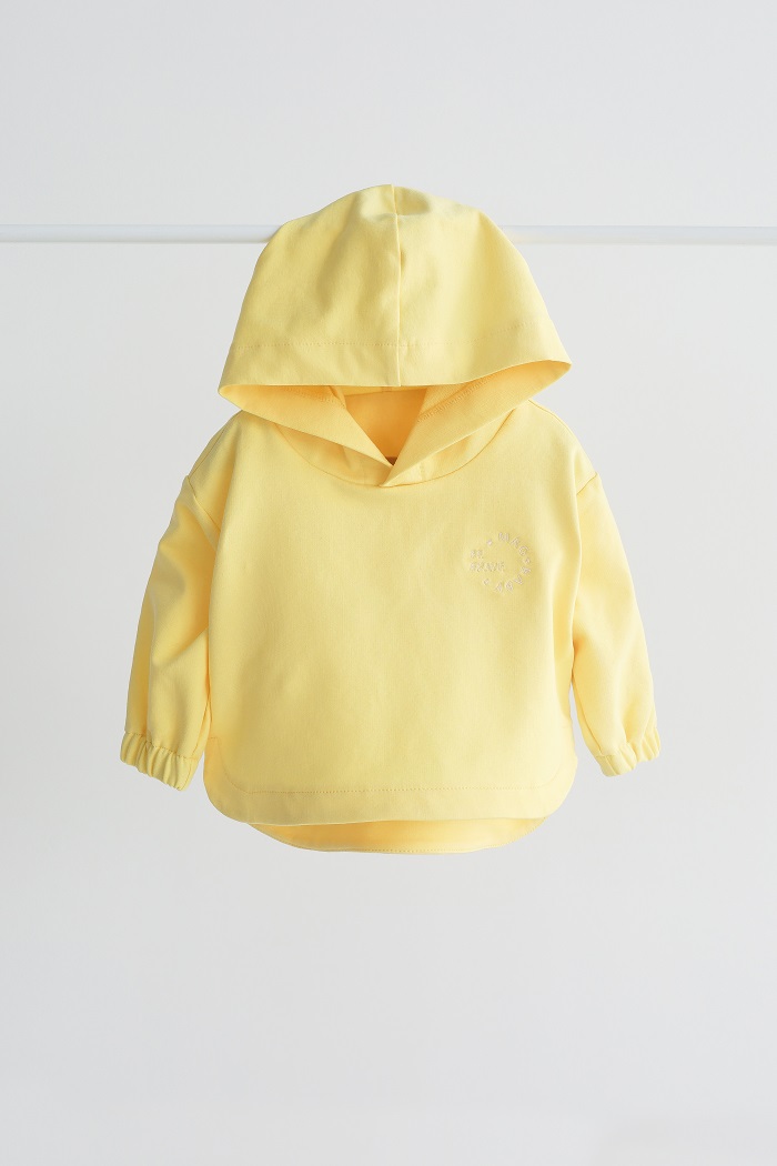 Изготовлено худи из двунитки с петельчатой изнанкой и имеет однослойный капюшон.