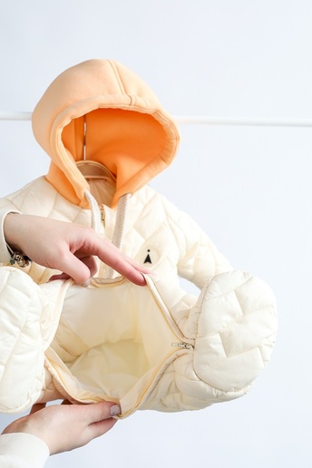 Мягкий и уютный, как постель в 7 утра, из которой так не хочется вылезать! Спонсор самых сладких снов и комфортных прогулок. А мимишные ушки на капюшоне придают особую сказочность.