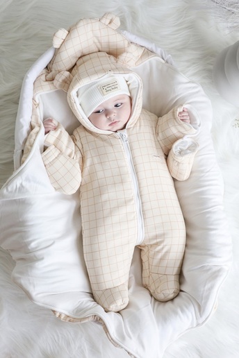 Пошит снаружи из нежного хлопкового велюра. Не вызывает аллергии и очень приятен тактильно для маленьких пальчиков. Внутри подкладка из гладкого хлопкового интерлока. Утеплен силиконизированным синтепоном – идеален для межсезонья.
