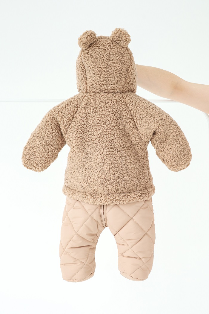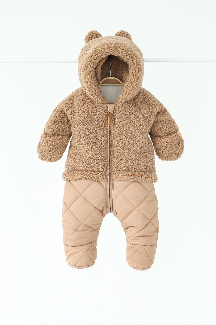 Настоящая зимняя сказка для маленьких медвежат! Внешне похож на комплект из курточки и штанов – стильно и небанально. А милые ушки на капюшоне придают образу игривости и обаяния.