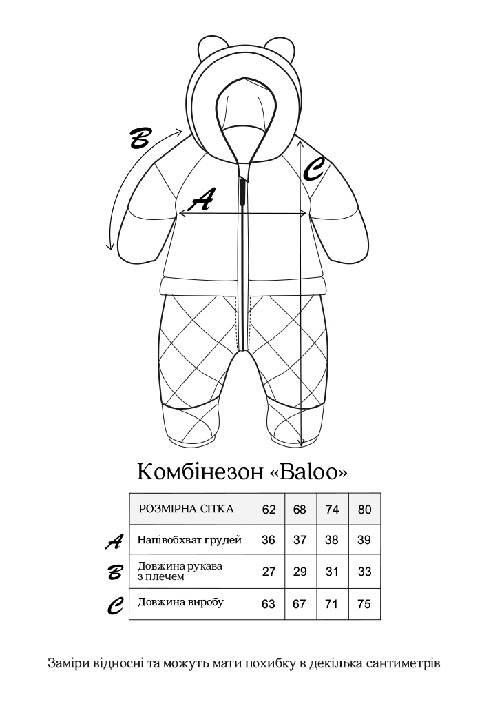 Утеплен силиконизированным синтепоном, который хорошо держит тепло, но не отягощает комбинезон и не сковывает движений малыша.